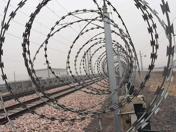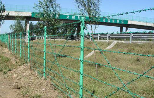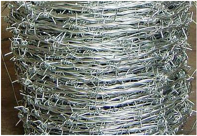 刺鐵絲是由全自動化的刺繩機擰編而成。民間俗稱鐵蒺藜、刺絲、刺線。 成品種類: 單絲擰編和雙絲擰編。 原材料:優(yōu)質(zhì)的低碳鋼絲。表面處理工藝:電鍍鋅、熱鍍鋅、涂塑、噴塑。有藍、綠、黃等顏色。 刺鐵絲用途: 用于草場邊界、鐵路、高速公路的隔離防護等。
