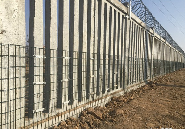 鐵路橋下防護柵欄安裝:將預留孔的混凝土鋼筋混凝土柱插入M10 * 150的螺栓網孔中,然后用M10 * 30的螺栓連接框架的接頭,以更好地增強堅固性。對于有起伏區域的山區,可根據安裝要求定制各種任意斜坡網格。根據使用地點,有兩種形式,A和B.連接板和螺栓由Q235鋼制成,鍍鋅能力為270g/m2。